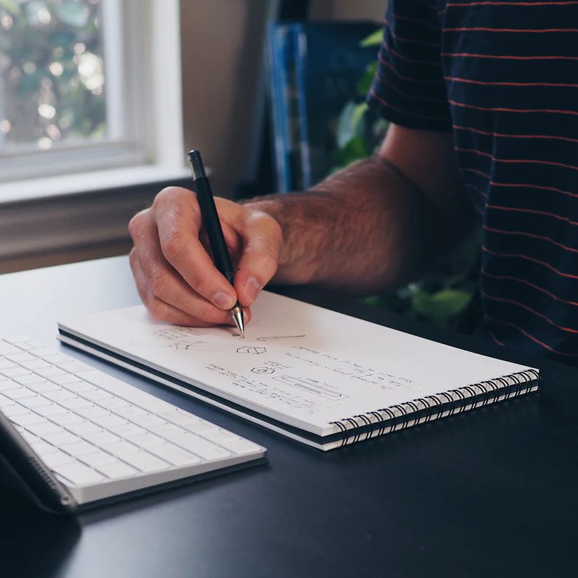 Anyone who’s juggled a keyboard and notebook on a cramped desk knows the struggle is real. Studio Neat offers a solution with the Panobook, designed to fit that space between your keyboard and monitor. The leathery moleskin cover gives it that “serious creative” vibe, while the spiral binding means it lies flat, no matter how frantic your sketching gets.