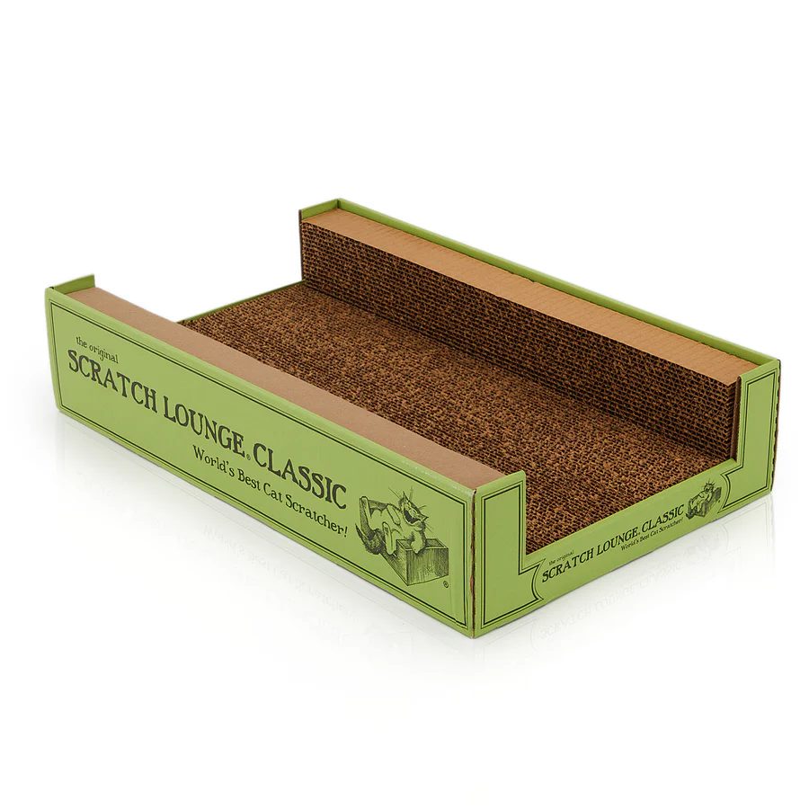 The Scratch Lounge uses a three-sided cardboard design that encourages natural stretching and scratching. Its reversible honeycomb pads provide multiple textures and longer life. The neutral, contoured design blends into living spaces while offering cats a comfortable, instinct-driven outlet.