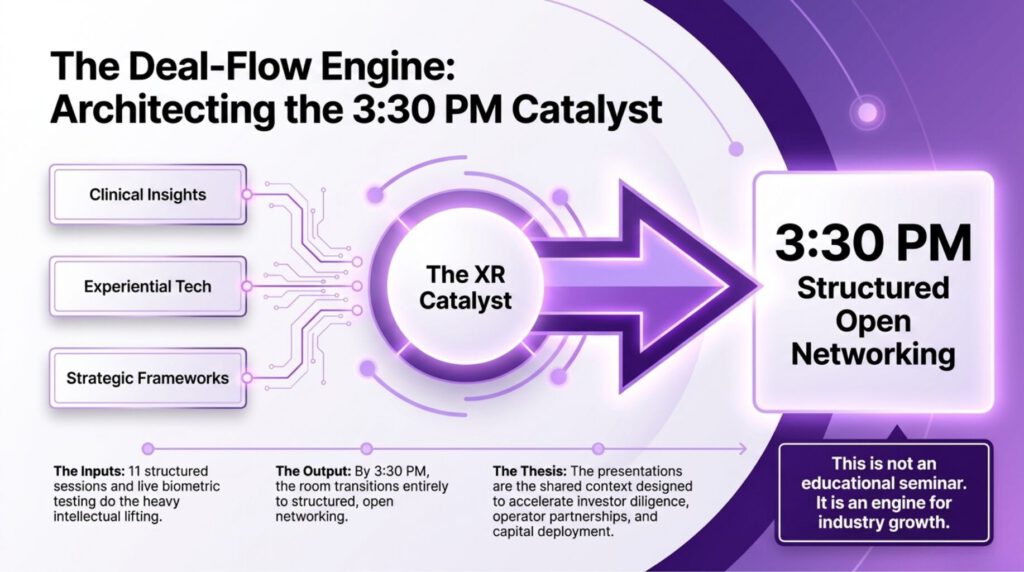 The day culminates from 3:00 PM to 4:30 PM with a focus on actionable next steps. The final presentation, “The Future of Longevity Leadership,” provides closing insights on where the industry is heading, key takeaways from the day, and an open Q&A with the audience. Following a final group photo, the event transitions into its most critical phase: an hour of open networking dedicated entirely to investor and partner conversations, ensuring the ideas discussed on stage translate into real-world business and capital deployment.