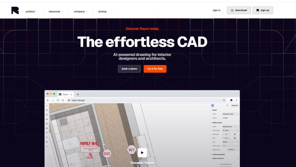 Rayon Design lets you draft in 2D and then, thanks to AI magic, converts those plans into slick 3D axonometric views. It’s the kind of upgrade that makes you wonder why you spent years hunched over a drafting table. The platform includes an extensive built-in block library with top, front, and side views for rapid design iteration.