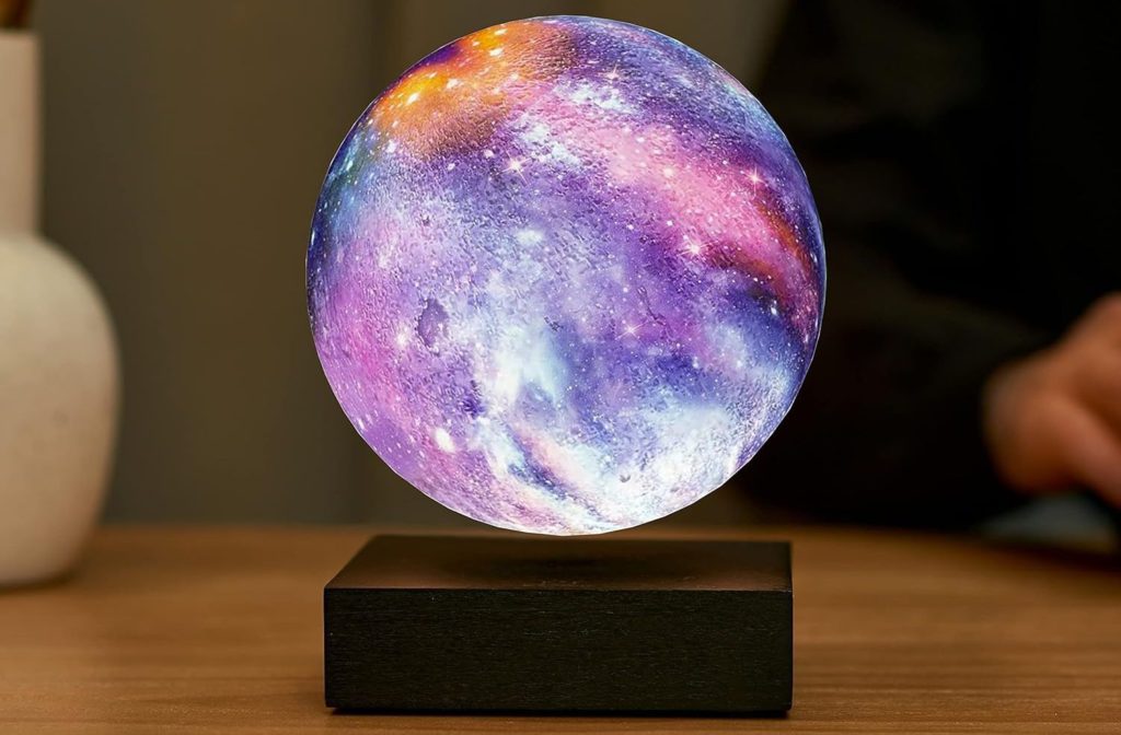 This 5.5-inch diameter moon floats in mid-air thanks to rotating magnetic levitation. It’s your personal celestial body without space dust allergies or astronomical travel costs.