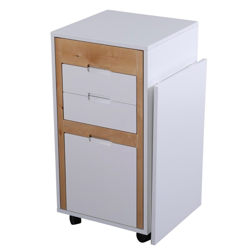This fully functional folding desk saves space, transforming your office into a minimalist decorative item when not in use. The desk features a lower filing cabinet and two drawers, perfect for anyone who’s fantasized about their office doing a disappearing act.