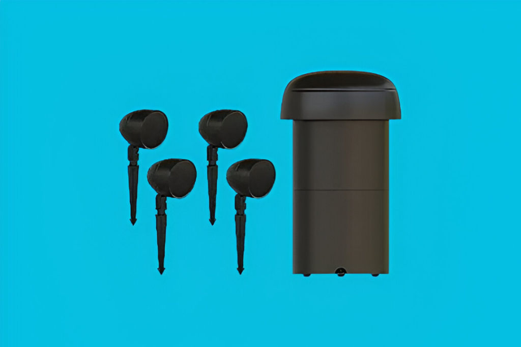Backyard entertaining gets a major upgrade with this weatherproof landscape audio system featuring four one-hundred-watt satellite speakers and a ten-inch, one hundred fifty-watt DVC subwoofer. The satellite speakers offer one hundred fifty-degree vertical rotation on pivoting arms for accurate sound placement, and the subwoofer can be mounted above ground, in the ground, or on a deck. Built with ASA materials and a fluorocarbon finish, the system handles temperatures from minus fifteen to one hundred sixty degrees Fahrenheit and can cover up to thirty five hundred square feet when expanded. It is ideal for permanent outdoor setups where small Bluetooth speakers cannot provide enough power or reach.