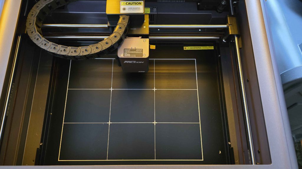 The Falcon A1 Pro excels in versatility and user accessibility. It’s ideal for small business applications, offering tool-free laser head swapping and compatibility with over 350 materials to support diverse craft and custom production. For beginners, its fully enclosed Class 1 design means you can use it safely without goggles, though we still recommend getting a pair if you plan on using some of the calibration methods that involve opening the enclosure. The laser runs at a lower power, but it never hurts to be careful! Additionally, the built-in 8MP camera and mobile app provide convenient remote monitoring and design preview capabilities.
