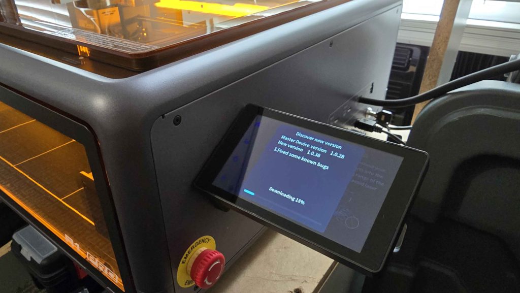 The machine features both top and front doors for easy material loading and access. Laser head swapping is tool-free and can be done in under 10 seconds, simplifying maintenance and module changes. The first time we removed the module, it took us longer than 10 seconds, but that was more from unfamiliarity. Replacing the module was so simple we thought we’d made a mistake! We hadn’t; we were just paranoid.