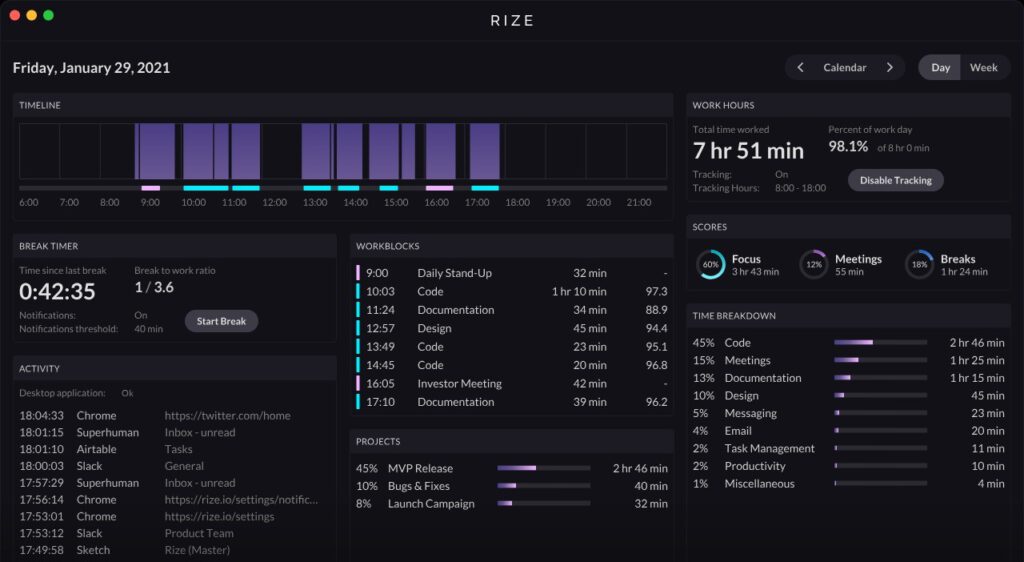 Rize steps in like a digital Mary Poppins, practically forcing you to build focus and sustainable habits. Unlike that free time tracker you downloaded last year and forgot about, Rize keeps tabs on your activities, projects, and clients, turning chaos into a color-coded symphony. It’s like having a tiny productivity guru living in your taskbar, except less annoying.