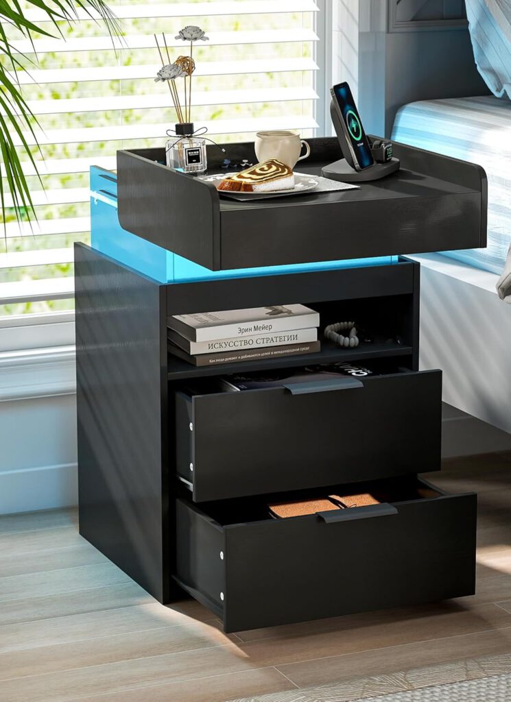 Imagine fumbling for your charger in the dark, only to knock over a glass of water. Instead, this smart nightstand lets you drop your phone for instant charging and adjust the mood with its three-color LED. Plus, those silent drawers mean no more waking your partner when you reach for the emergency chocolate.