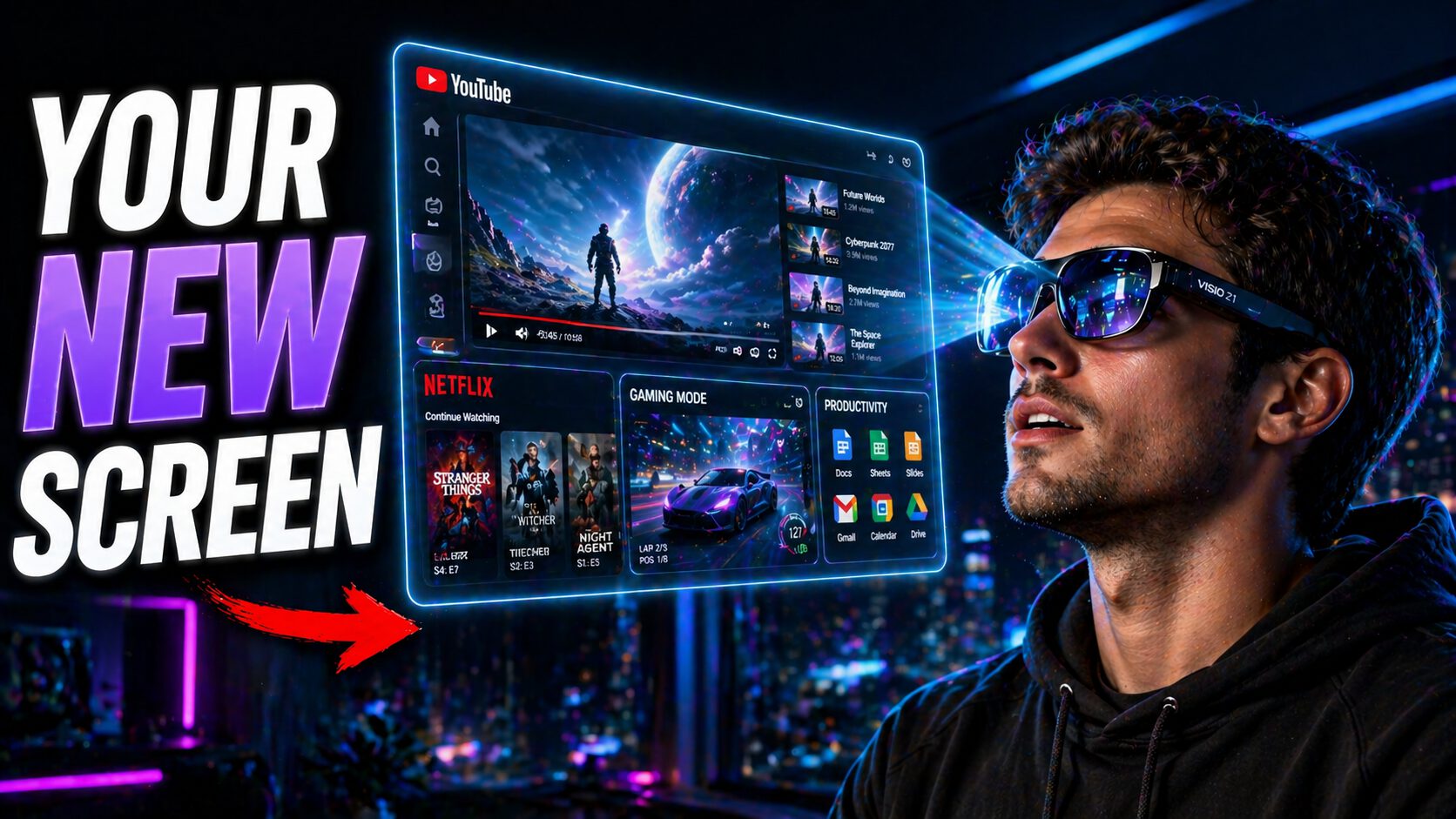 These ultralight 63g AR glasses project a massive 160-inch virtual screen with incredible brightness and gaming compatibility.