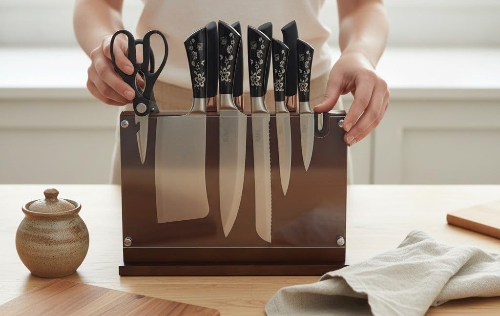 Consider it a stylish upgrade from that sketchy knife block you’ve had since college. That dull knife you’ve been using to hack tomatoes? Yeah, it’s time to retire that. Plus, it enhances kitchen safety and organization, so you won’t accidentally recreate a scene from Psycho every time you reach for a paring knife.