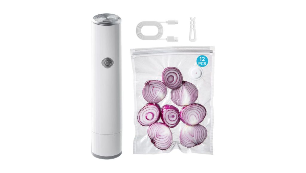 Leftovers lingering in the fridge, morphing into science experiments? The compact THETCHRY handheld vacuum sealer might just be your kitchen’s new superhero. This cordless wonder comes with 12 reusable vacuum bags and sucks the air out like a toddler with a milkshake.