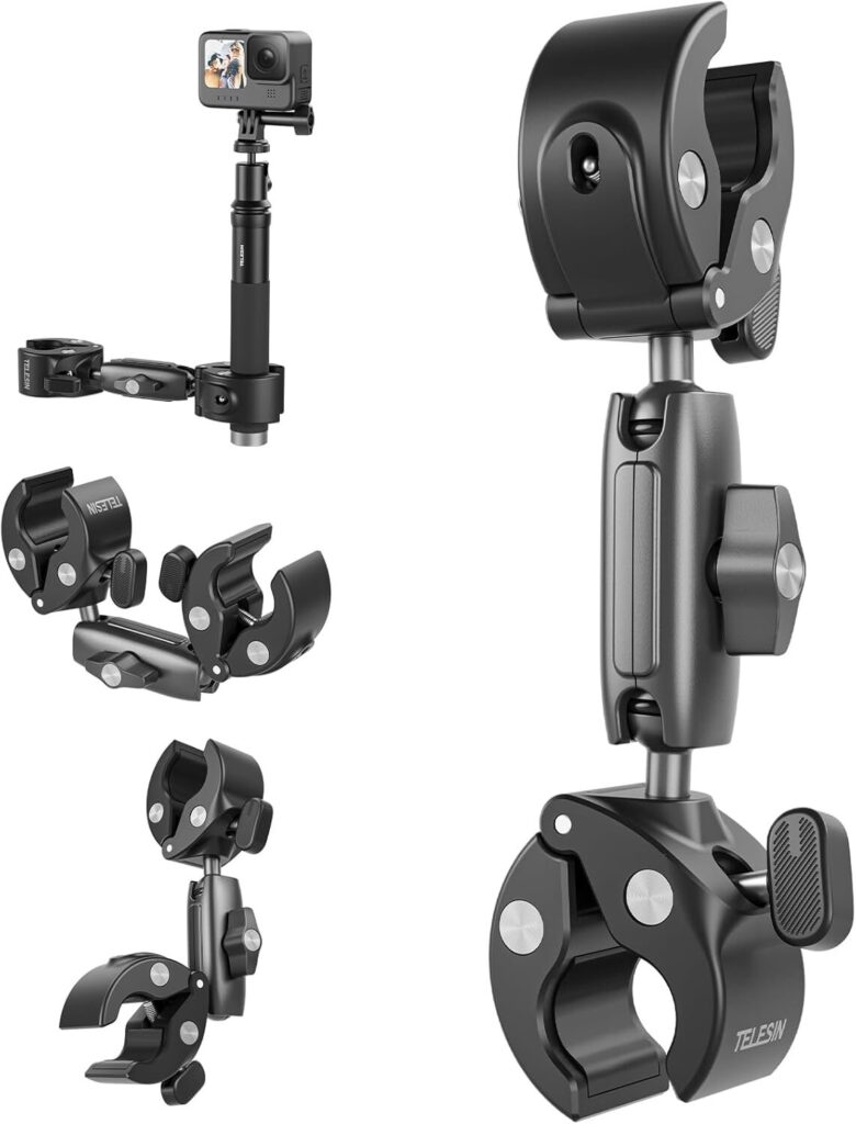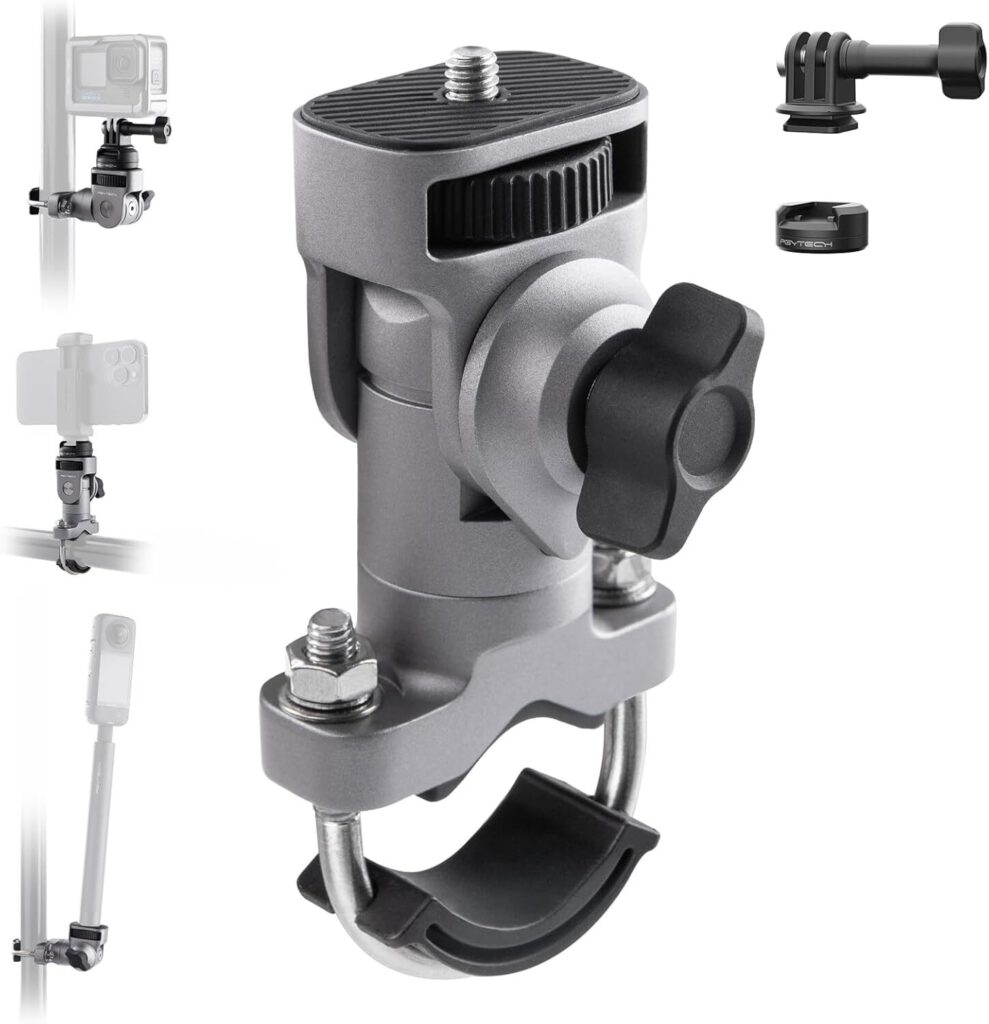 The Tyisher Aluminum Alloy mount uses a double-clamp handlebar system to secure cameras like Insta360 and GoPro, perfect for capturing twisty roads. If handlebars measure between 0.6 to 1.75 inches, this mount’s got riders covered. Think of it as Botox for action cams—it keeps everything smooth.