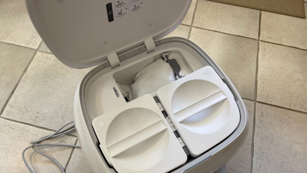 The waste water tells the story. After a cleaning cycle, the Curv 2 Flow’s dirty water tank looks genuinely disgusting. Dark water. Visible grime. The roller was pulling dirt out that the spinning pads had just been moving around.