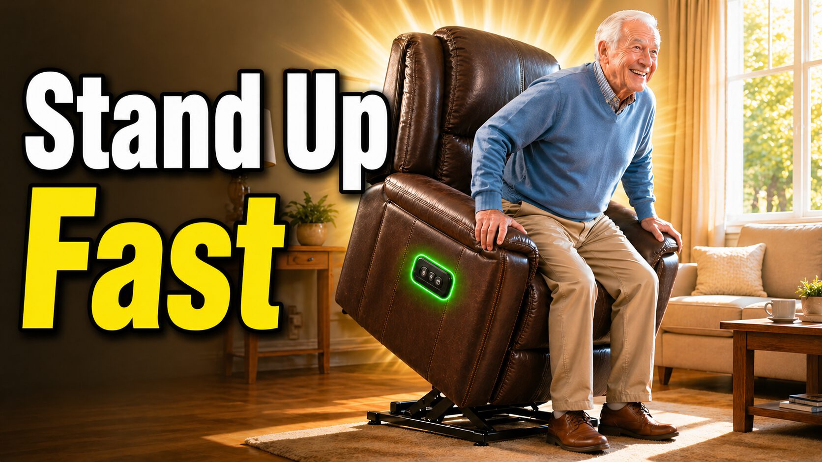 This faux leather lounger transforms sitting and standing into effortless button presses.