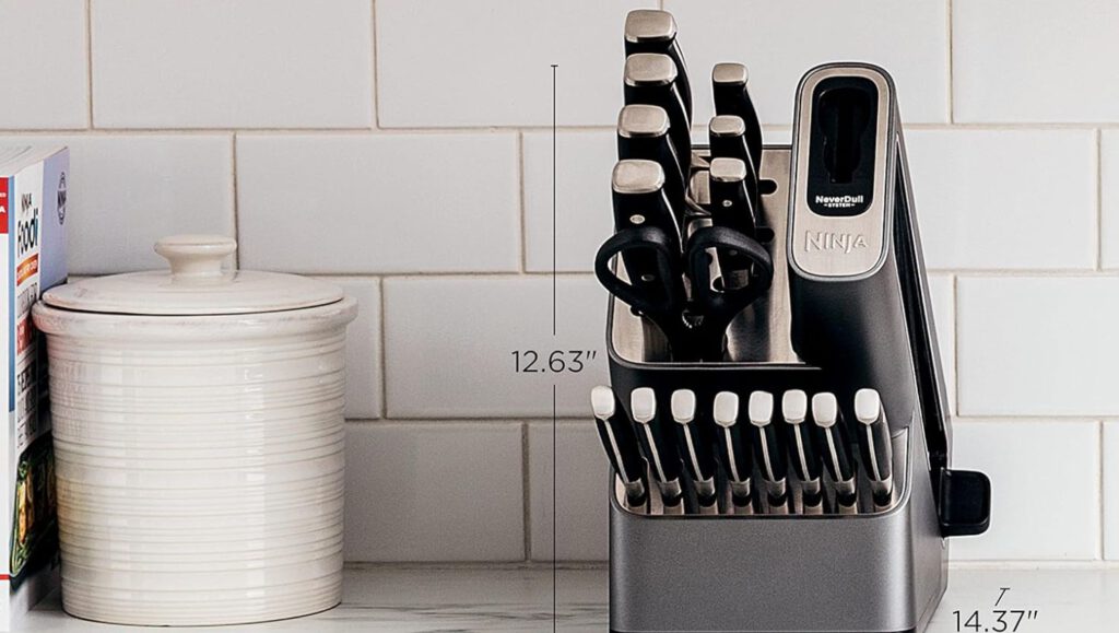 The ergonomic handles promise balanced control, which is crucial when attempting to julienne carrots like a pro. Plus, it includes a built-in knife sharpener—so there’s no excuse for dullness. These knives promise less struggle and more gourmet glory, even if your culinary skills peak at boiling water.