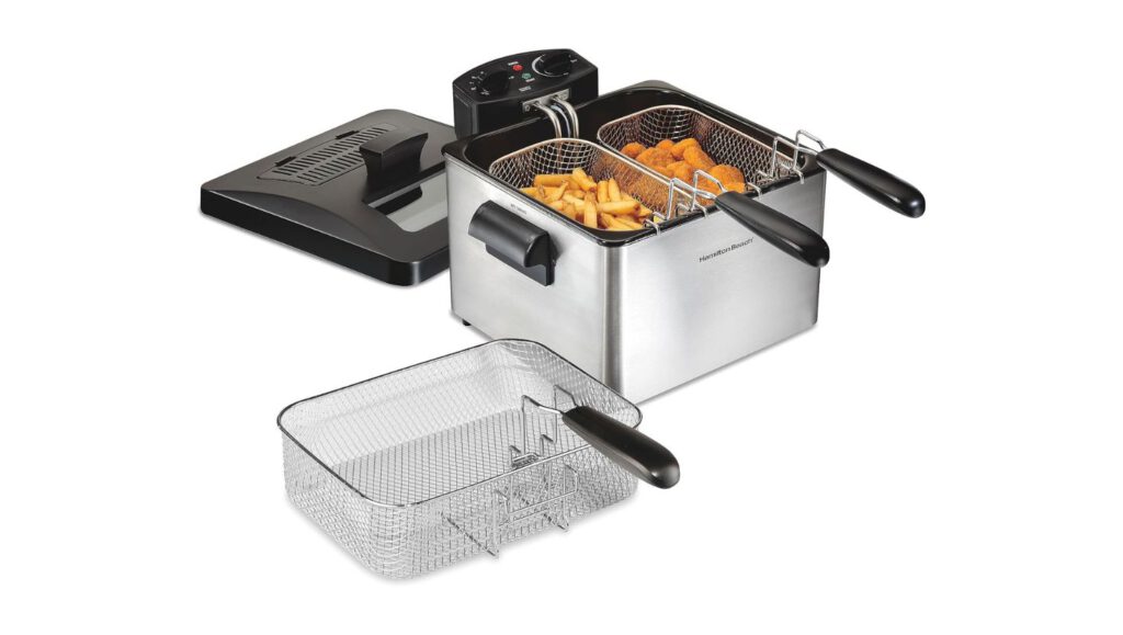 For anyone who’s ever hosted a party only to spend the entire night chained to a fryer, this thing is a game-changer. The electric deep fryer cooks large batches simultaneously, thanks to its three versatile baskets and vented lid design that minimizes oil splatter.