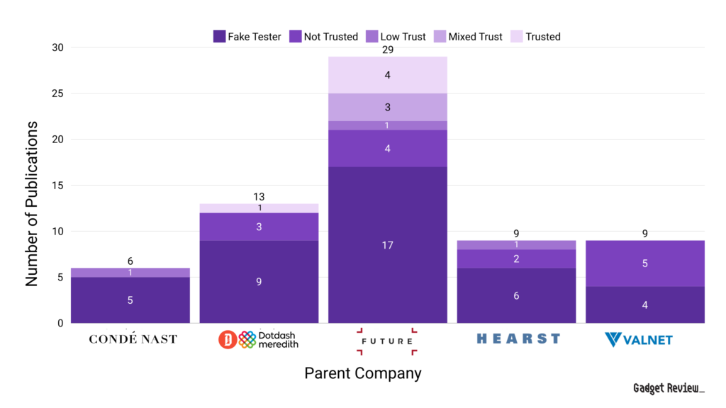 - Not Trusted: 36 publications, such as Mashable, Digital Trends, and Popular Mechanics, were classified as untrustworthy. That means nearly 45% of the reviews demonstrated significant trust issues.