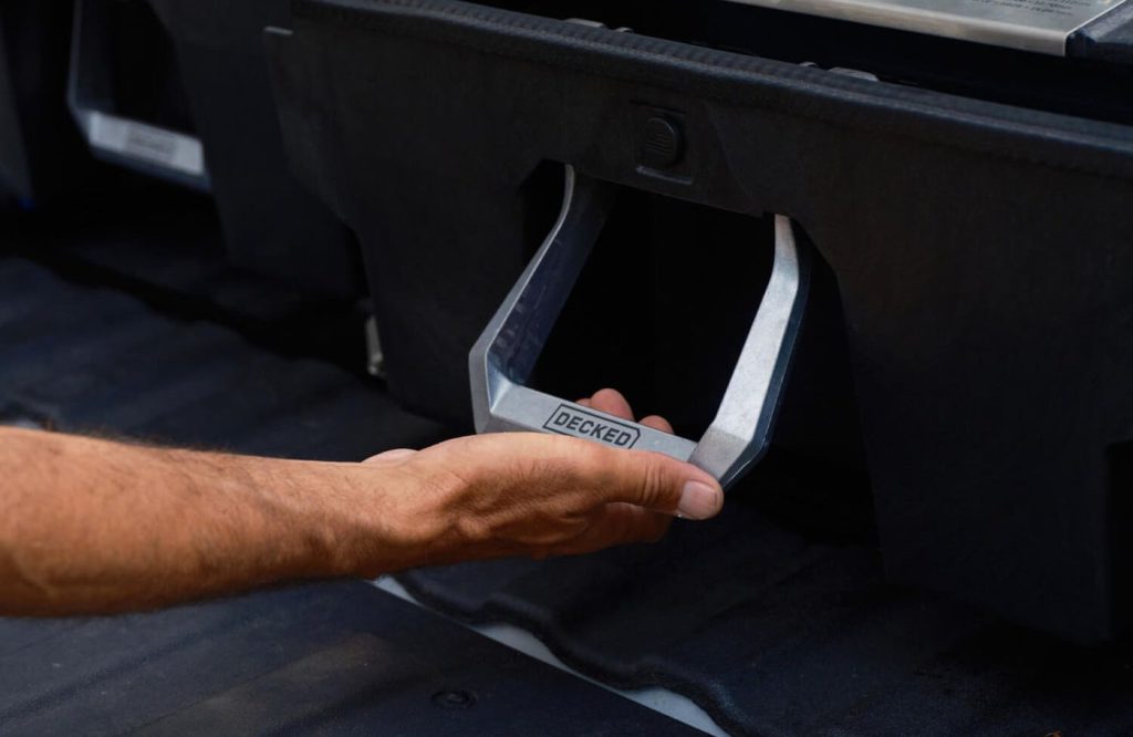 DECKED transforms chaotic truck beds into organized command centers with full-extension drawers that support up to 2,000 pounds of distributed weight. The system creates a flat platform on top while providing 6.83 cubic feet of weatherproof storage below—like having a basement under your truck bed.