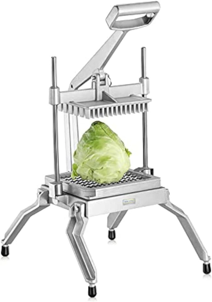 Prep time is money, especially when you’re running a kitchen that makes more noise than a Metallica concert. The New Star Food Service lettuce cutter is like the industrial shredder your salads have been dreaming of, sporting an aluminum frame tougher than your uncle’s questionable meatloaf. Stainless steel blades slice through your greens and fruits into precise 1.3-centimeter (0.5-inch) pieces.