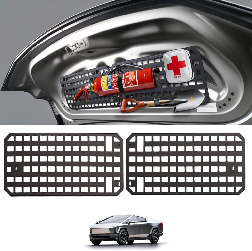 These versatile storage panels transform your Cybertruck’s interior from chaos machine into mobile basecamp. Built from durable aluminum alloy, they provide secure mounting points for pouches, hooks, and accessories, turning wasted space into customizable organization.